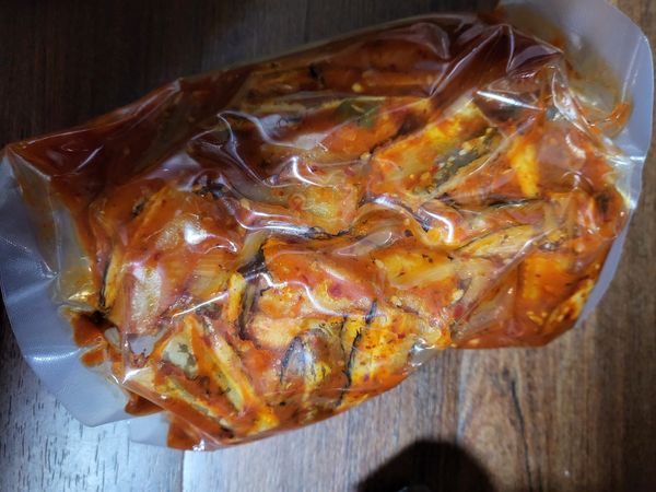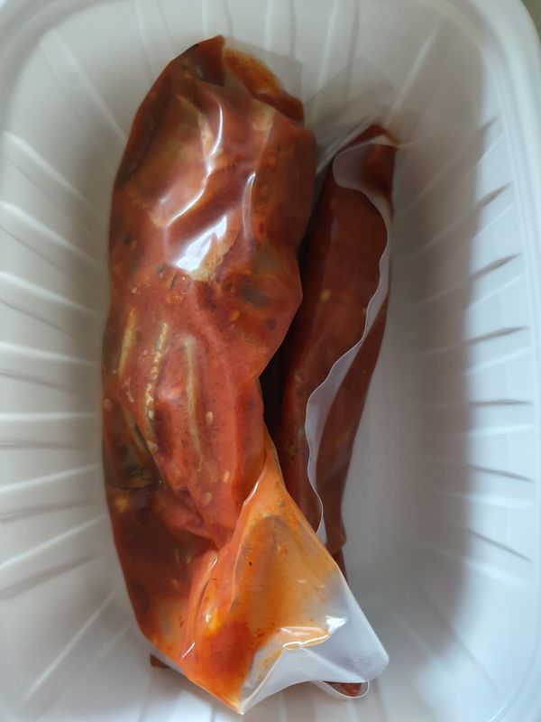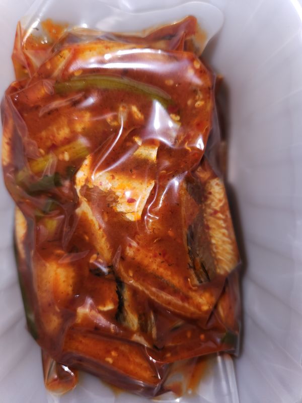 전자렌지에 돌려서 먹었는데 비린냄새가 나요. 식감은 말린거라 양념이랑 맛있어요. 비린냄새가 아쉽네요.