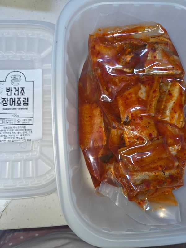 별로 기대 안하고 장어를 시켰는데 식감도 쫄깃하고 양념이 적당히 매워서 맛있게 잘 먹었어요 장어 먹고 싶어도 기름져서 먹기가 망설여 졌는데 반건조해서 양념 맛있게 만들어서 파니까 먹기 부담없어서 좋습니다~~