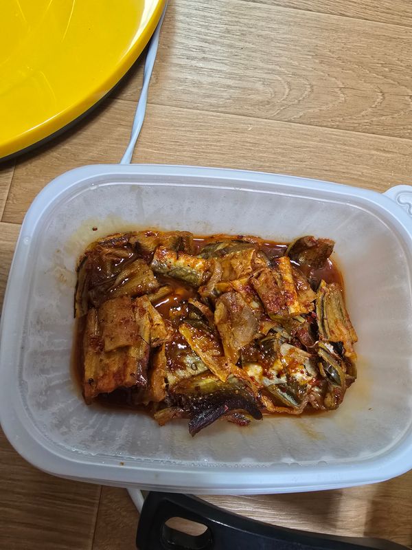 완전 해동해서 반찬통에 넣어두고 먹을만큼 덜어서 데워먹고 있어요. 매콤하고 맛있어요.