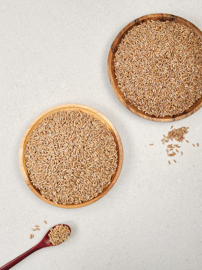 엠머밀은 단단한 껍질 덕분에 조리 후에도 쫀쫀하고 탱글한 식감이 살아 있어요.