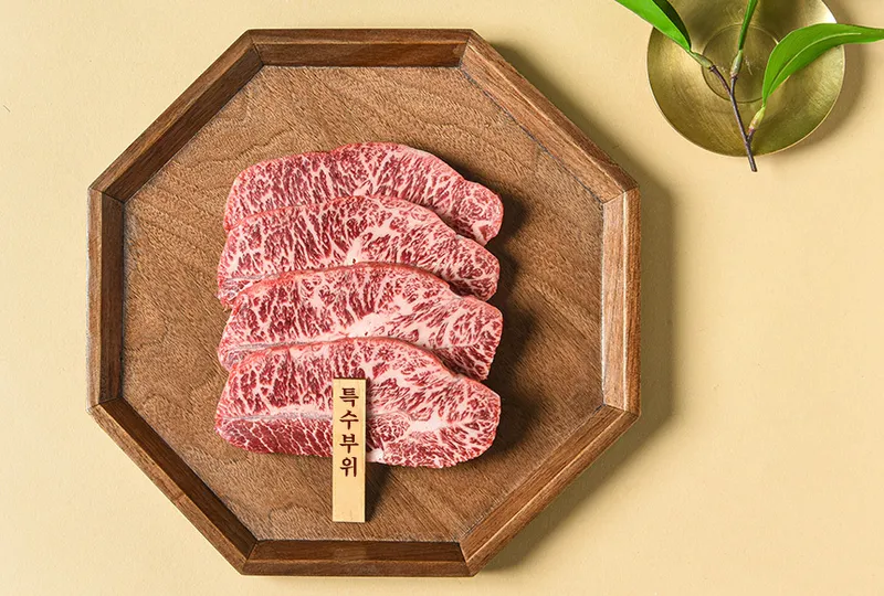 진한 육향을 제대로 즐길 수 있는 특수 부위입니다. 특수 부위는 부채살, 치마살, 업진살, 토시살, 안창살, 제비추리, 갈비살, 살치살 외 랜덤으로 한 부위가 출고됩니다.