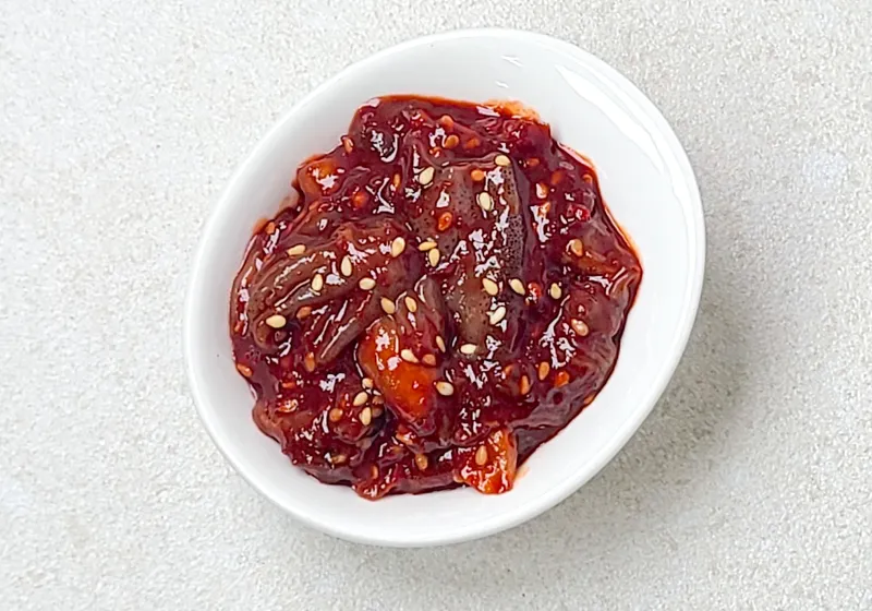 매콤하면서도 짭짤한 맛이 입안 가득 퍼져 밥맛을 돋우는 꼴뚜기젓이에요. 특유의 감칠맛이 입맛을 자극하고 풍성한 맛을 선사합니다. 여기에 재료의 신선함이 더해져 중독적인 맛을 느낄 수 있어요.