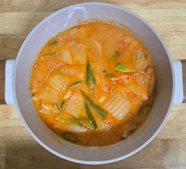 김치와 재료가 듬뿍 들어갔어요. 구수하고 매콤해서 맛있어요. 비오는 날에 생각 날 맛이에요