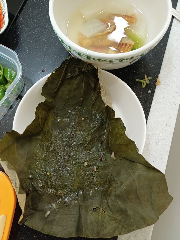 간단히 데워서 먹으니 참 좋아요. 연잎을 펼지는 순간 연잎향에 반하고 오곡의 재료들이 조화롭게 한쌈 만들어 졌어요. 맛은 말해 뭐해요.넘넘 고소하니 맛있네요.장아찌와 조합이 좋네요. 집에서 연잎밥 잘 먹었어요ㅎㅎ