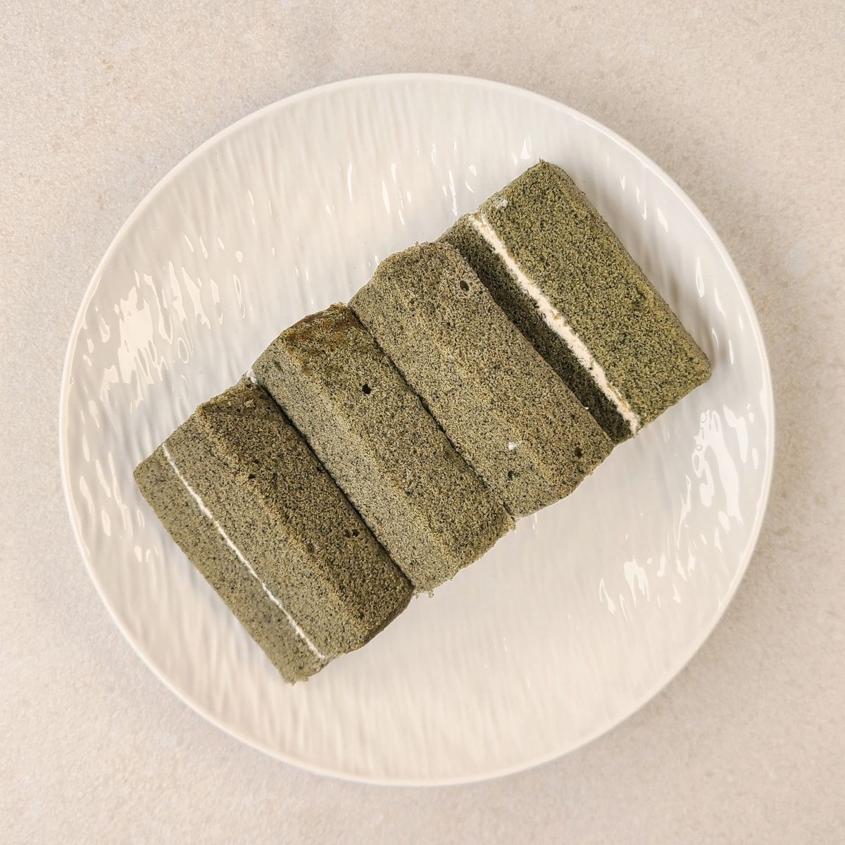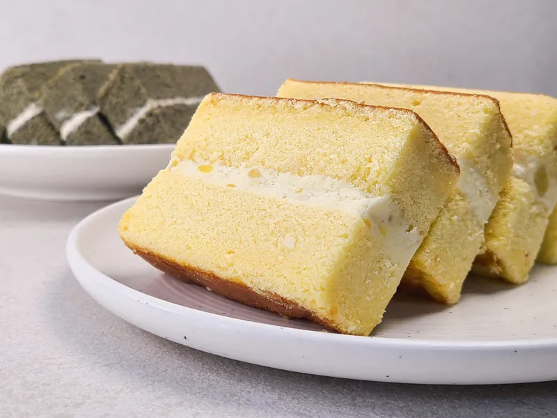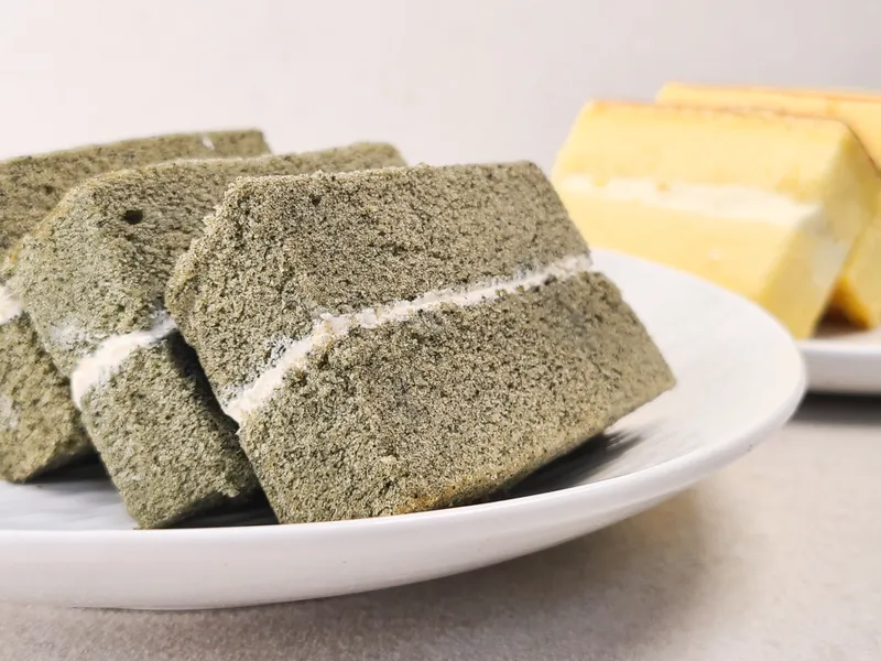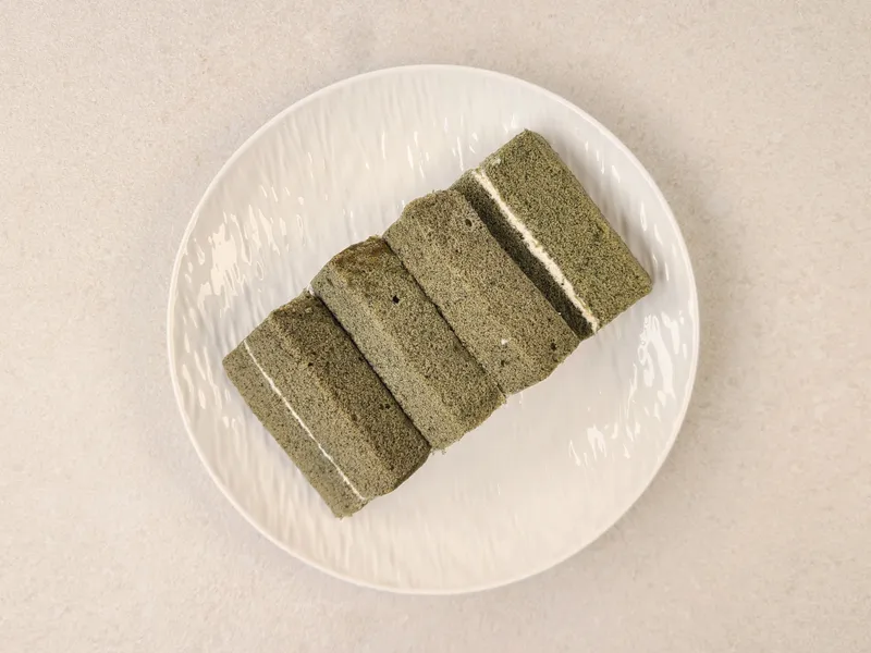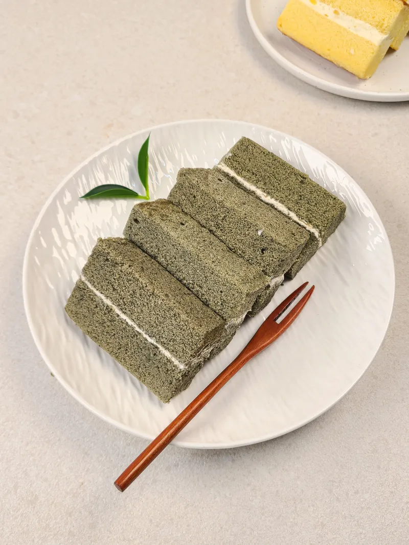 부드러운 식감의 쑥 쌀케이크 시트에 고소한 콩고물 크림의 풍미가 조화로워요. 자극적이지 않게 끝 맛에 은은한 쑥 향이 맴돌아요.