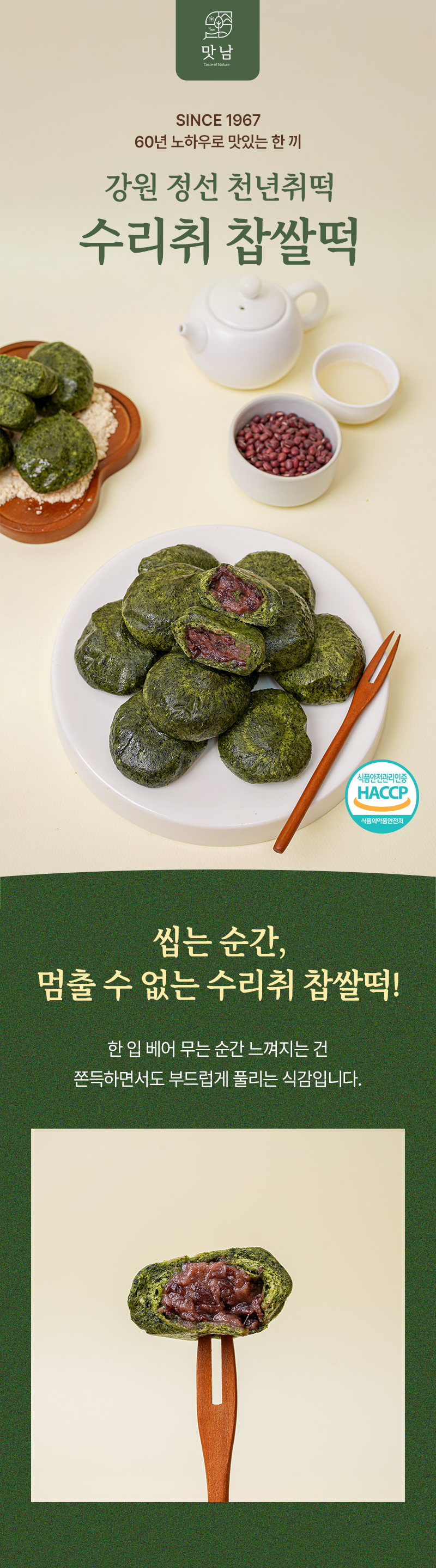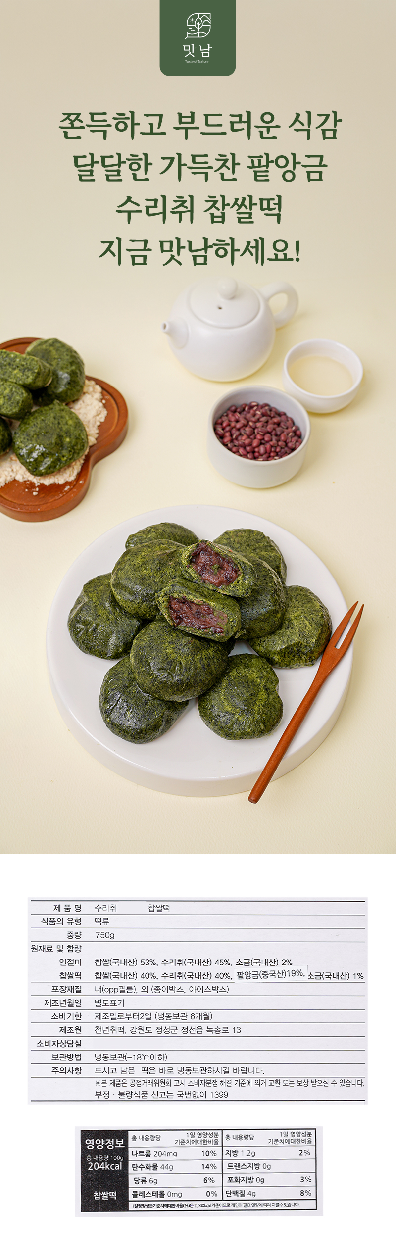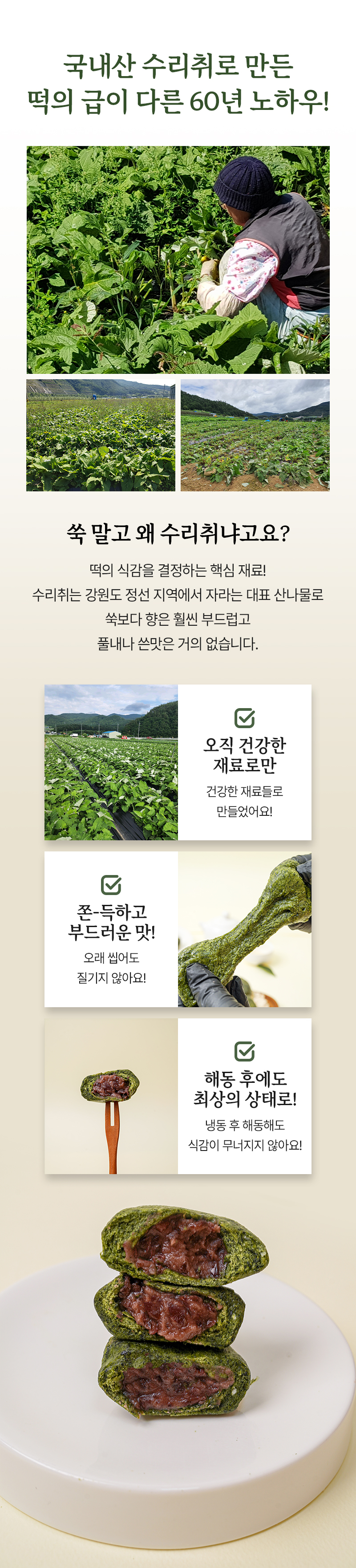 [푸드맛남] 강원도 정선 수리취 찹쌀떡 750g 15개 (선물상자)