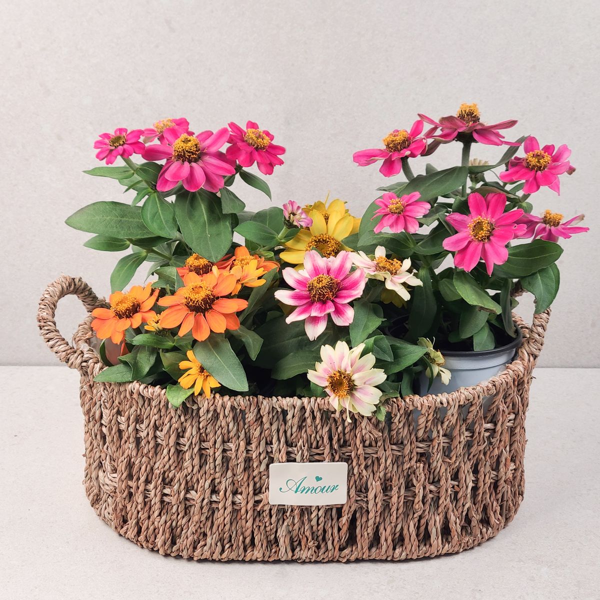 옵션: 백일홍 2종(색상랜덤) 10cm 포트 / 2종 사각 바구니 (+5000원)