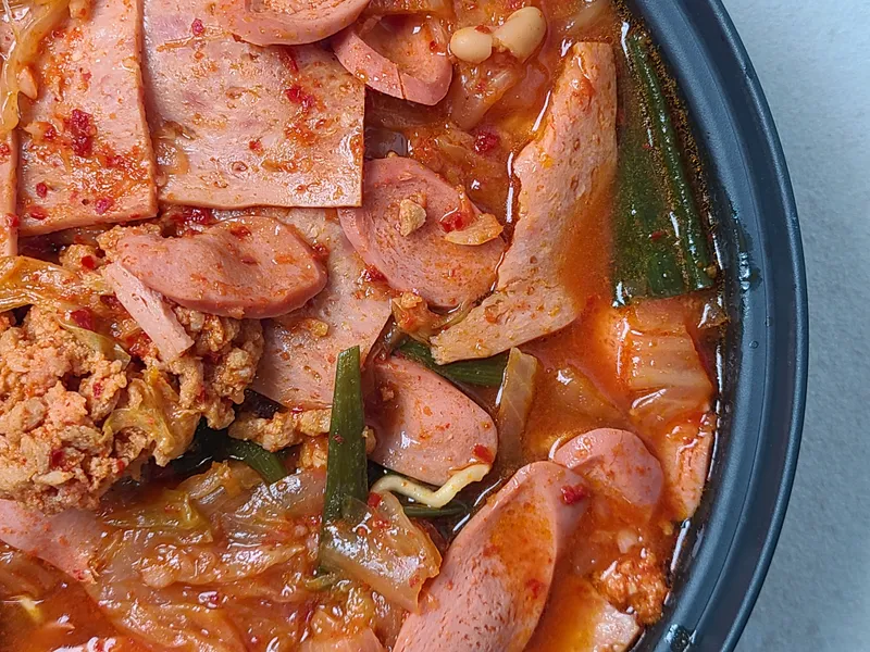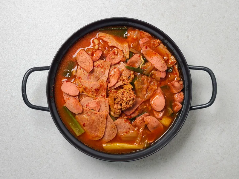 매콤하면서도 깊은 감칠맛이 가득한 국물이 일품이에요. 햄과 소시지의 풍미가 어우러져 더욱 깊은 맛을 내요. 8시간 진하게 우린 닭 육수와 직접 만든 특제소스의 조합으로 깊이감이 남다르답니다.