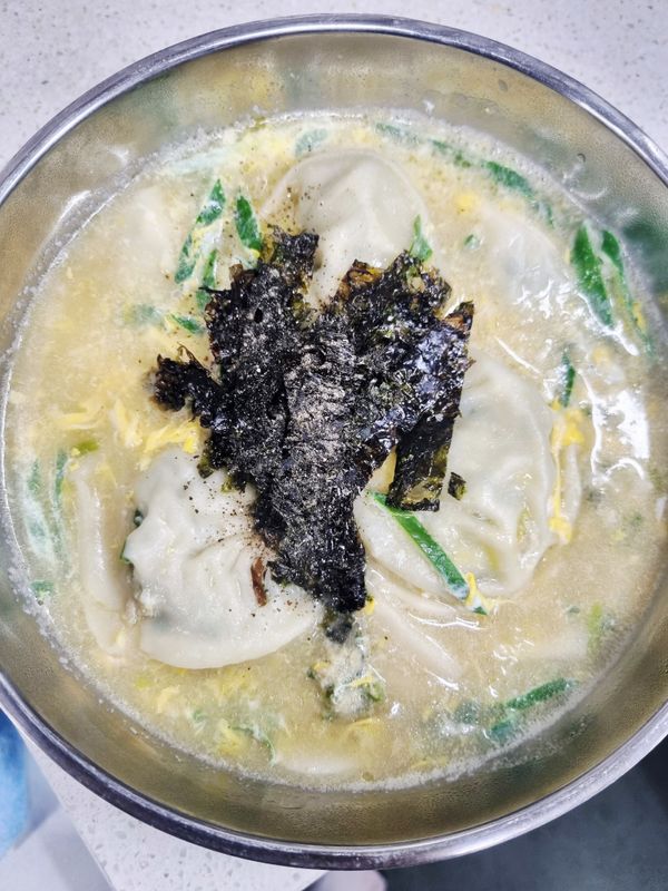 만두가 느끼하지 않고 참 맛있네요. 떡 만둣국 끓여봤어요