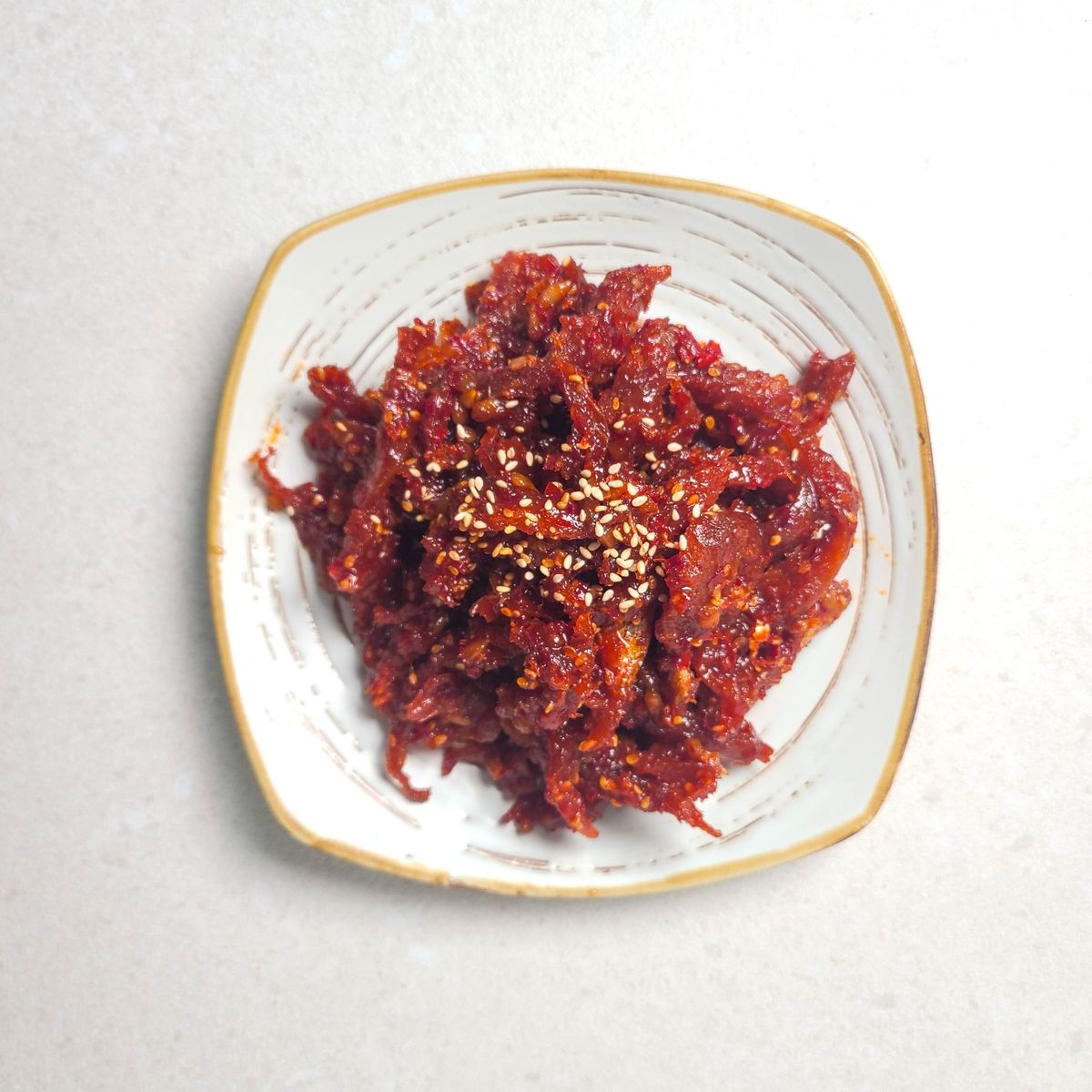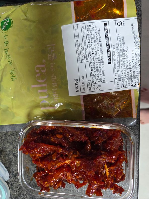 이름 그대로 매콤함과 담백함의 균형이 잘 잡힌 맛이었습니다. 양념이 과하게 자극적이지 않고 적당히 매콤해서 밥반찬으로 먹기 좋았고, 황태 특유의 고소한 맛이 살아 있어 계속 손이 갔습니다. 황태채도 질기지 않고 부드러워 씹는 식감이 좋았고, 양념이 골고루 배어 있어 전체적으로 맛있었습니다. 포장도 깔끔해서 바로 꺼내 먹기 편했고, 500g이라 양도 넉넉해 반찬으로도 먹고 술안주로 먹었습니다. 매콤하면서도 담백한 황태무침을 찾는 분들께 추천하고 싶은 제품입니다.