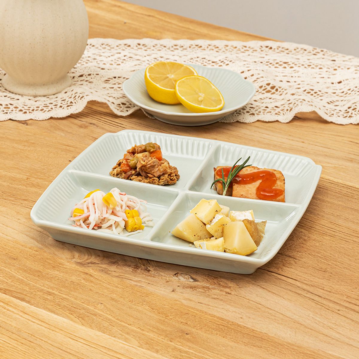 국내생산, 윤도자기 청아 4절 나눔접시 청자 도자기 그릇