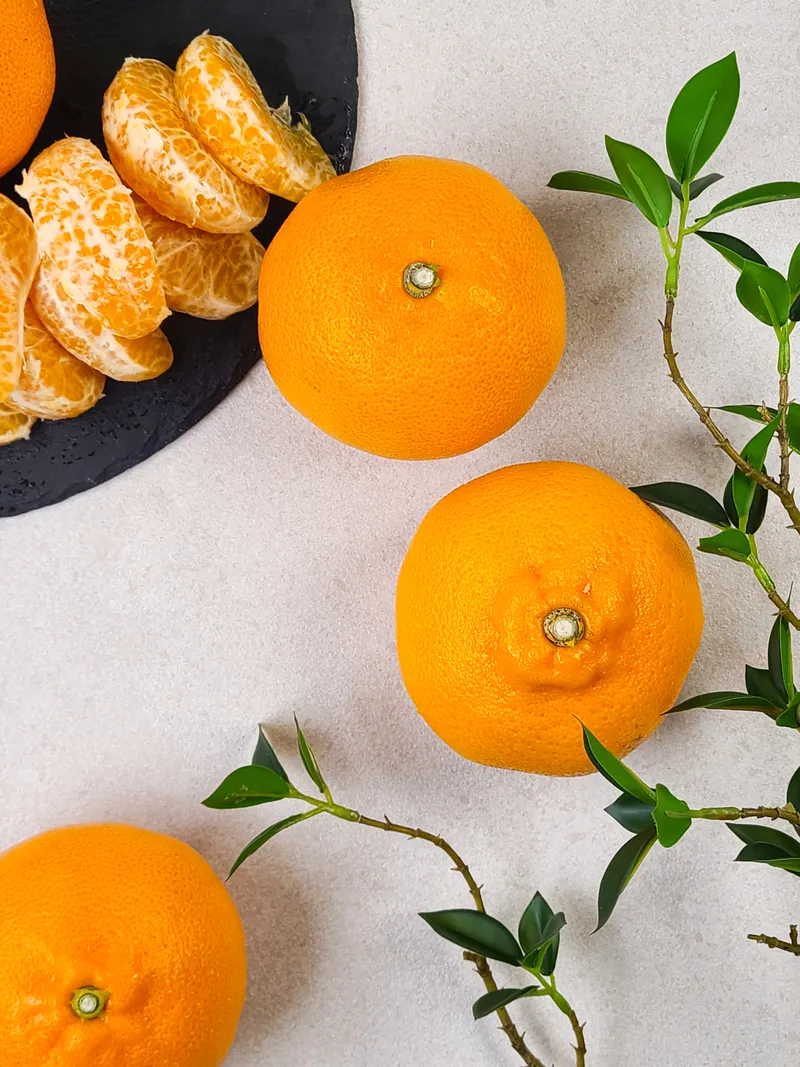 천혜향은 청견과 밀감류를 교배시켜 탄생한 품종으로, 특히 향이 강하기로 유명합니다. '향기가 천리를 간다'하여 천혜향이란 이름이 붙여졌죠. 일반 오렌지보다 큼직한 크기를 자랑하며, 껍질이 얇고 과육이 매우 부드럽습니다.