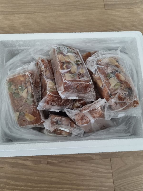 냉동고에 쟁여 두고 한 개씩 꺼내 전자랜지에 1분 정도 돌려 먹으면 바로 한 약식처럼 아주 좋아요.
