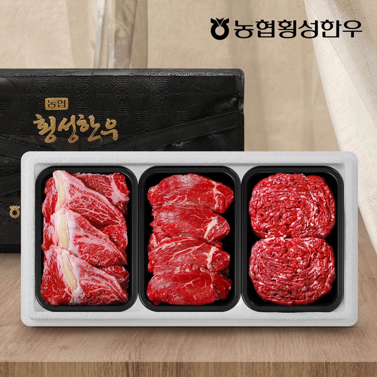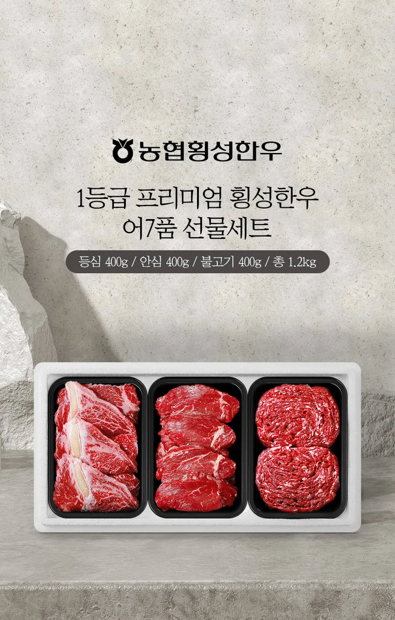 [농협횡성한우] 1등급 프리미엄 횡성한우 어7품 선물세트 1.2kg (등심+안심+불고기)