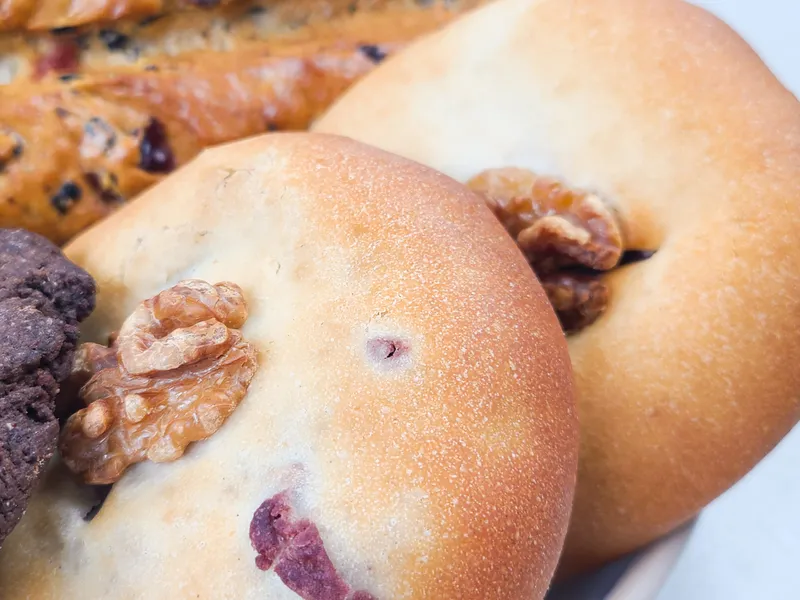 직접 쑨 수제 팥과 호두를 듬뿍 넣어 달지 않고 고급스러운 맛이 좋은 팥빵입니다.