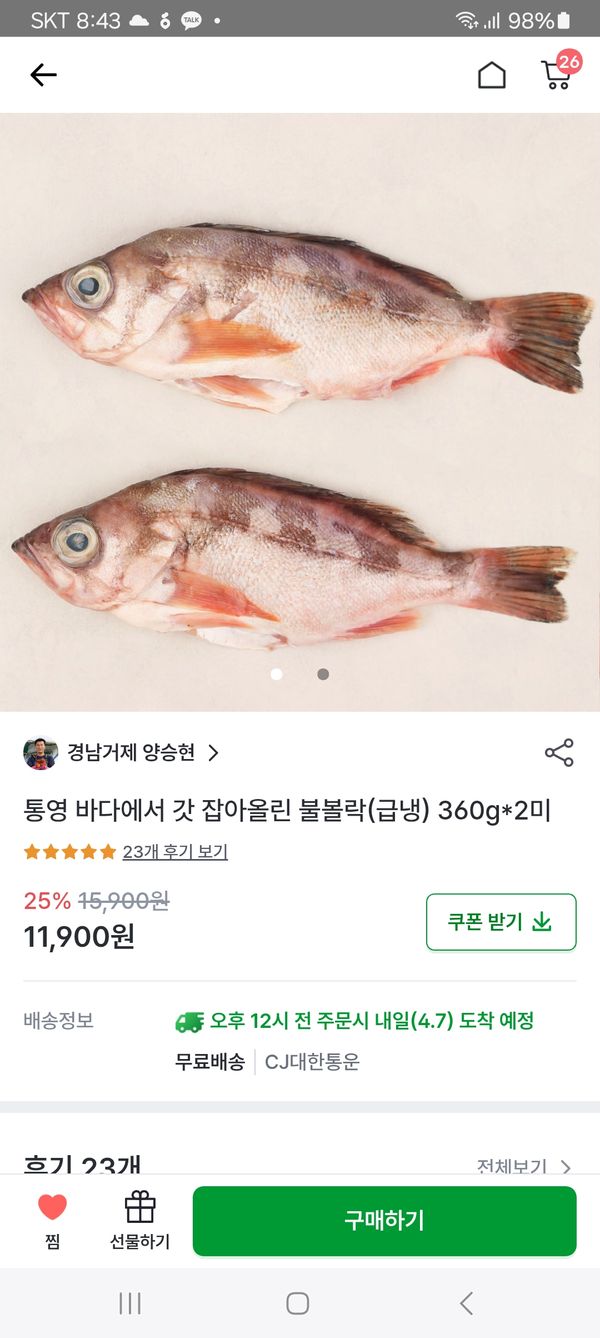 옵션: 자연산 손질 불볼락(급냉) 360g*2미