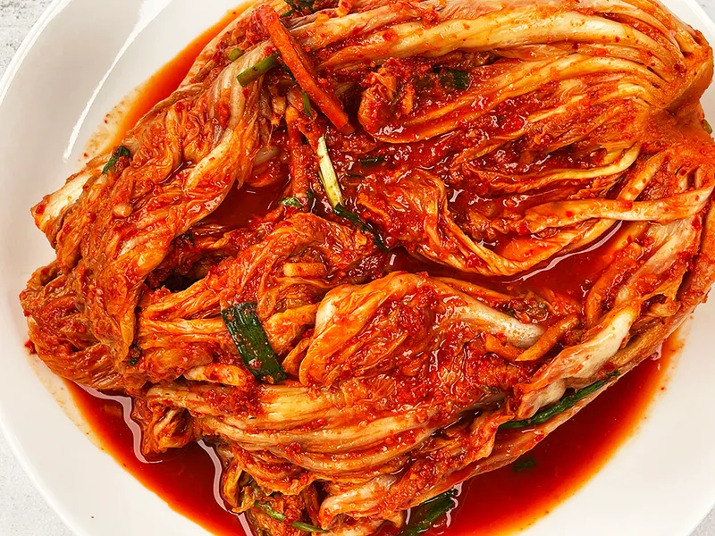매콤하면서도 시원한 맛이 일품인 전라도식 포기김치입니다. 각종 천연 재료를 갈아 만든 물고추 양념을 진덤진덤하게 버무려 젓갈향과 감칠맛이 끝내줍니다.