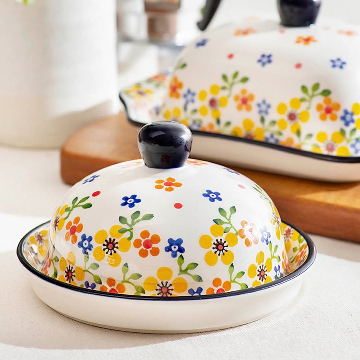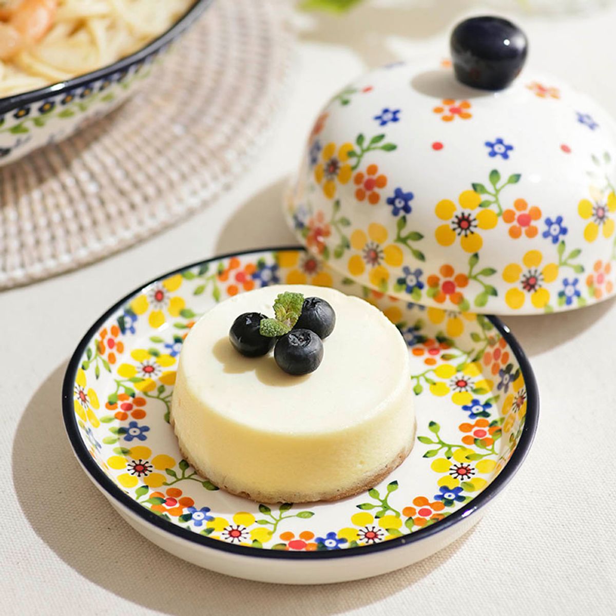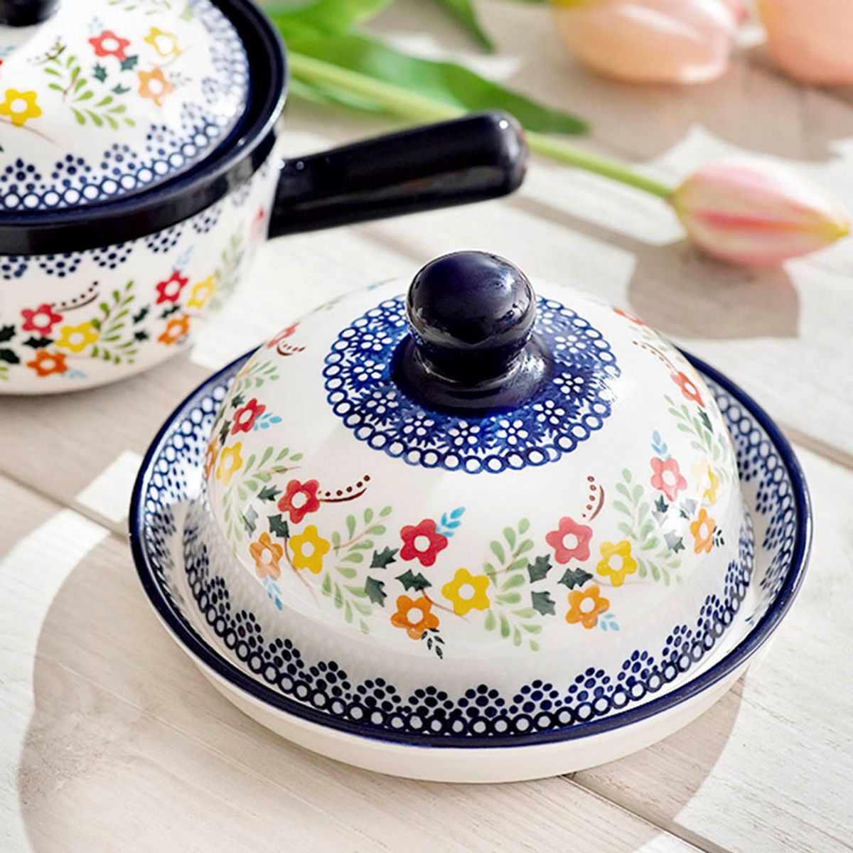 프라카 원형 버터디쉬 소 세트(받침+뚜껑) 폴란드풍 도자기 그릇