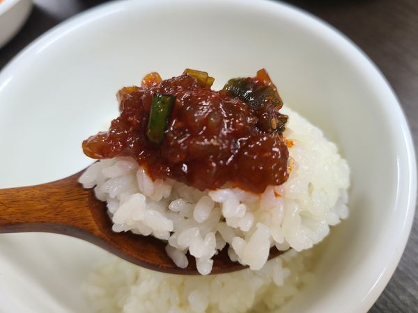 새우 비빔장은 처음 접해보는데, 비린거 잘 못 먹어 젓갈류도 안 먹는 저에게 이 집 새우비빔장은 맛난 밥도둑이네요^^ 잘게 다져 약간 매콤하지만 자극적이지않은 양념에 버무려져서 먹기 편합니다. 단, 저만 그러는것인지 새우맛을 잘 모르겠더군요 .ㅋ
