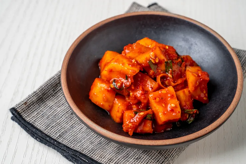 시원하고 깔끔한 맛에 반하는 전라도식 깍두기입니다. 아삭아삭한 식감은 물론 달큼한 맛까지 좋아 설렁탕, 곰탕, 누룽지 등과 찰떡궁합을 자랑한답니다!