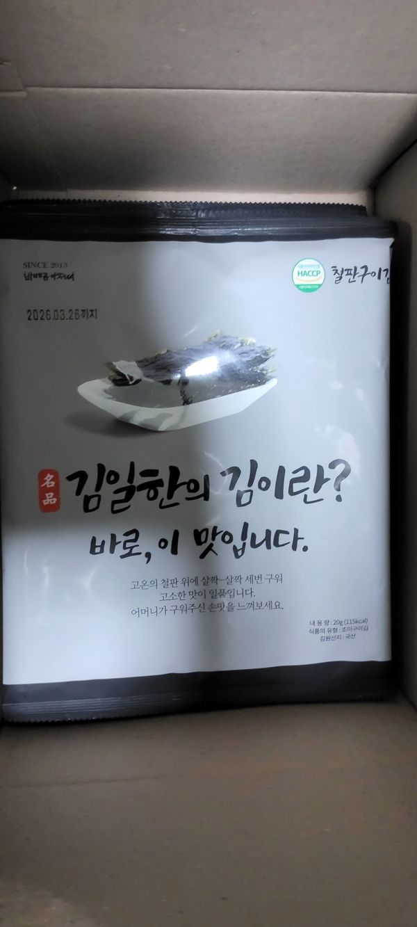 옛날 재래식 같은 들기름 솔솔나고 짭짤한 너무 맛있는 김 이네요 추천