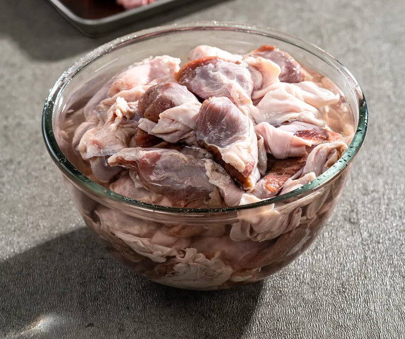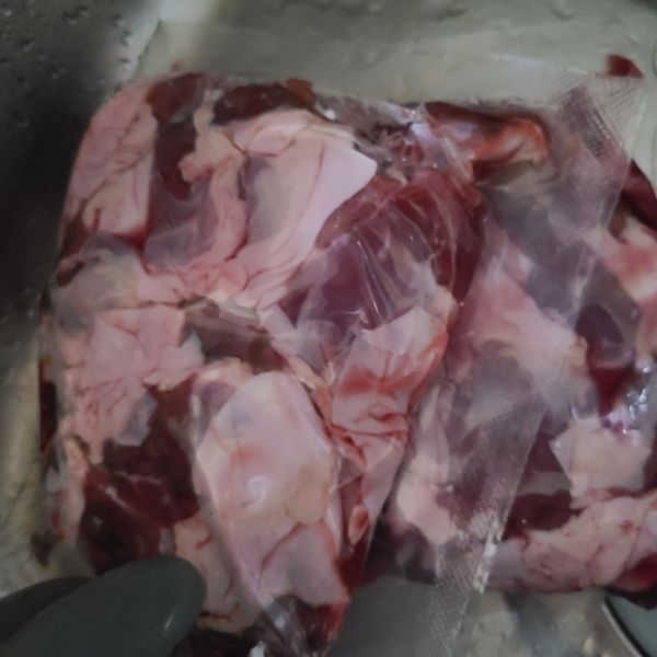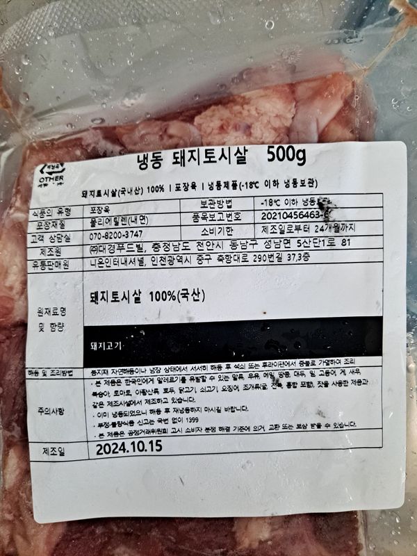 개봉된 돼지고기 토시살을 찬물에 담궈 2~3시간 해동 및 핏물을 제거하여 주세요