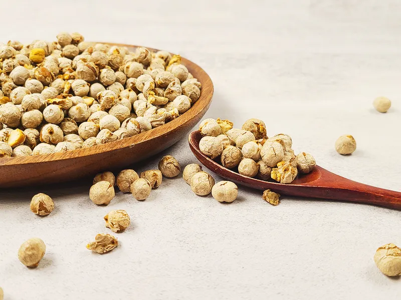그동안 드셨던 딱딱했던 병아리콩은 잊어주세요🙌 저희 병아리콩은 부드럽게 고압으로 볶는 워터 에이징 기법을 사용했어요. 눅진한 밤 식감 그대로 살려 딱딱하지 않죠. 씹을수록 고소한 중독적인 맛이랍니다.