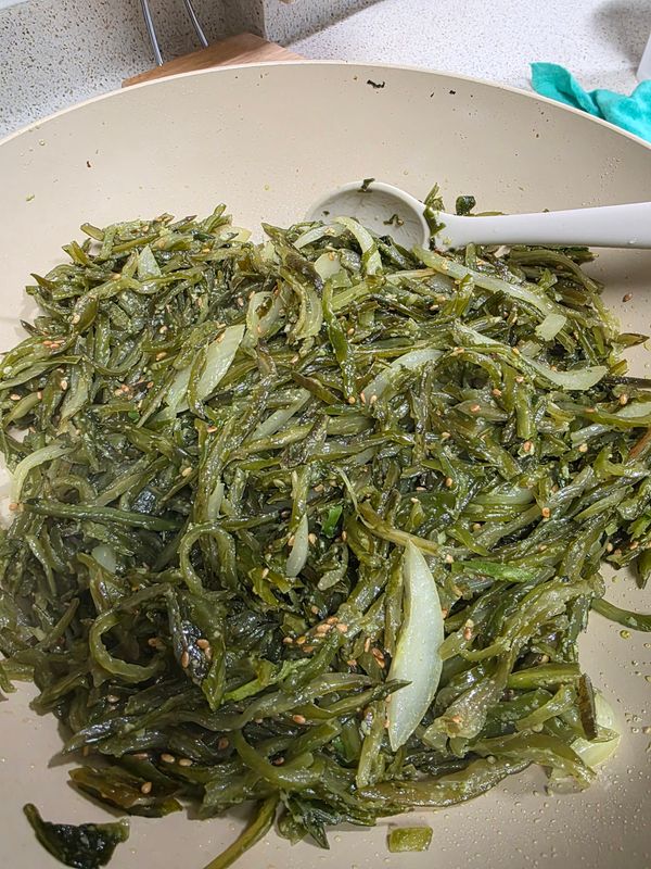 마른미역줄기 보관도 편리하고 물에 불려 간단하게 해 먹을 수 있네요. 한 봉지 불리려다가 작은듯해서 두봉지 불렸더니 양이 엄청 많아졌어요. 잘 먹겠습니다.