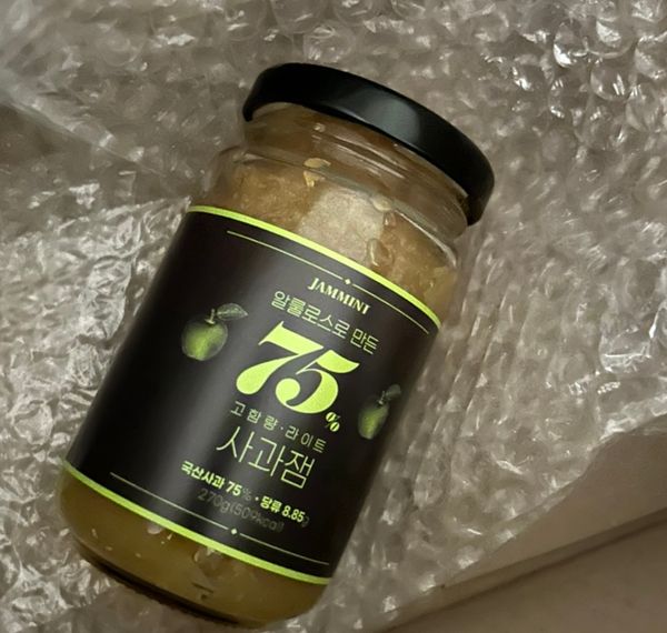 잼중에서 사과잼을 제일 좋아합니다. 그런데 설탕 대신 알룰로스(대체당)로 건강하게 단맛을 내고 합성첨가물은 넣지않아 건강을 생각한 잼이라해서 구입했습니다~