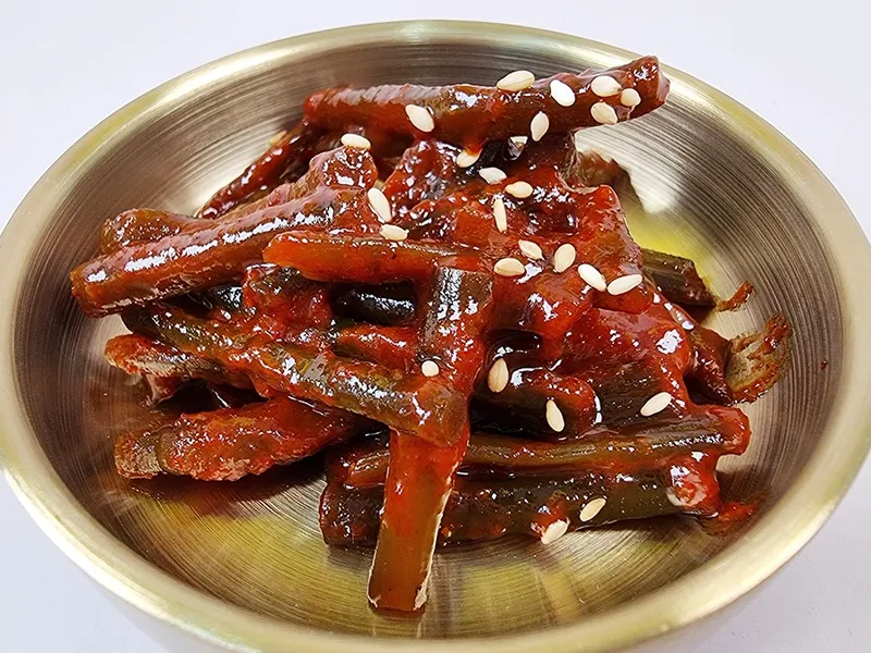 마늘쫑 특유의 아삭한 식감과 향긋함을 그대로 느껴보실 수 있습니다. 매콤달콤하면서 묵직한 고추장 양념으로 무쳐 밥반찬으로도 제격이에요! 적당한 매운 맛으로 누구나 부담없이 즐길 수 있습니다.