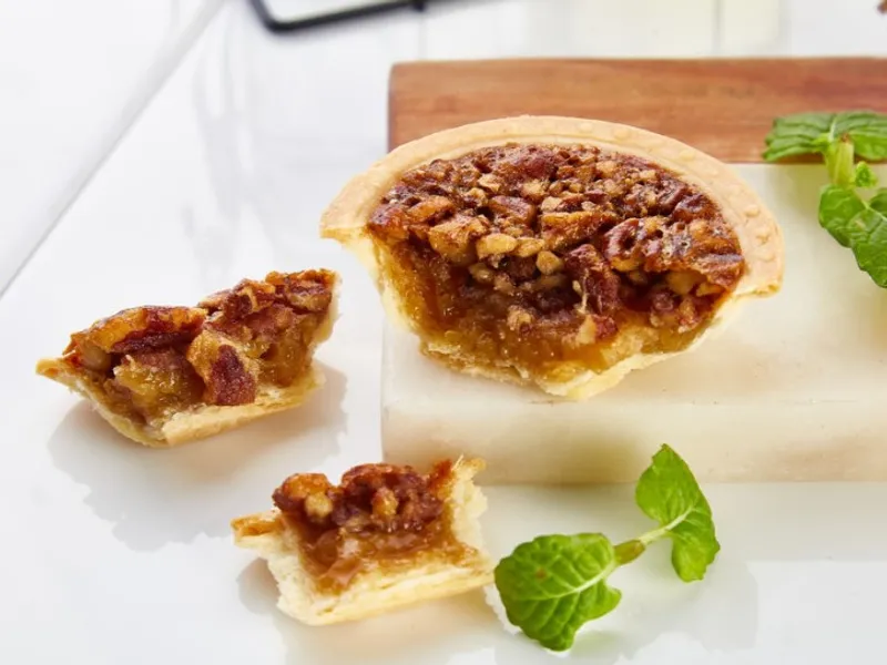 견과류 특유의 오독한 식감과 진한 고소함이 매력적인 피칸을 아낌없이 올린 피칸파이를 소개합니다. 오븐에 두 번 구워내 피칸의 텁텁한 맛을 줄이고, 바삭한 파이쉘과도 환상적인 궁합을 자랑해 한 입 맛보면 저절로 엄지 척! 하게 되실 거예요.