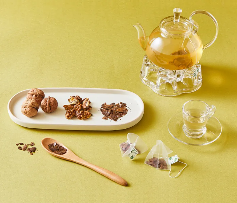 요즘 카페나 사무실 등 어디를 가도 카페인을 많이 접하게 되죠. 호두티는 카페인이 들어 있지 않아 부담없답니다. 따뜻한 티로, 얼음을 넣어 시원하게 또는 냉장고 채워 두고 물처럼 마셔보세요. 각종 요리의 육수로 활용해도 참 좋아요.