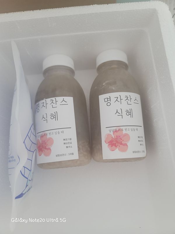 몇번째 시켜 먹는지 몰라요~저는 60대 인데~십혜를 명절때나 평소에도 집에서 자주 해먹 었는데~우연히 명자찬스 식혜를 시켜 먹은후 부터는 제가만든 식혜맛과 같아서 감탄하고 놀랐어요~이번에도 너무 잘먹고 있어요~주위에도 추천 드리고 있어요~오래오래 이맛을 유지해 주시고 오래오래 쭉~~~~운영해 주시면 감사 하겠습니다~번창 하세요~♡♡♡