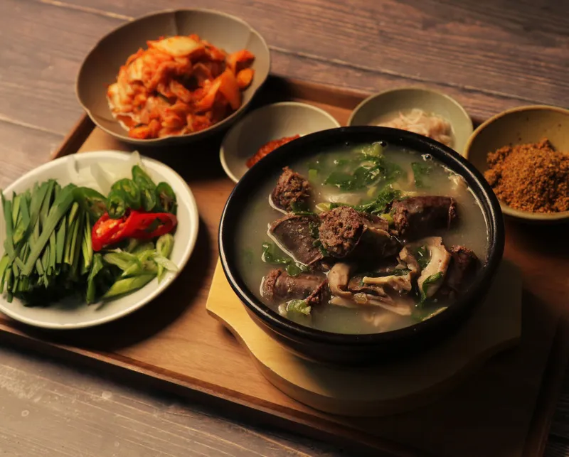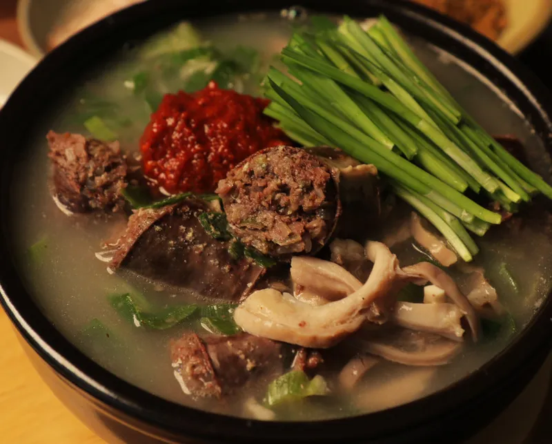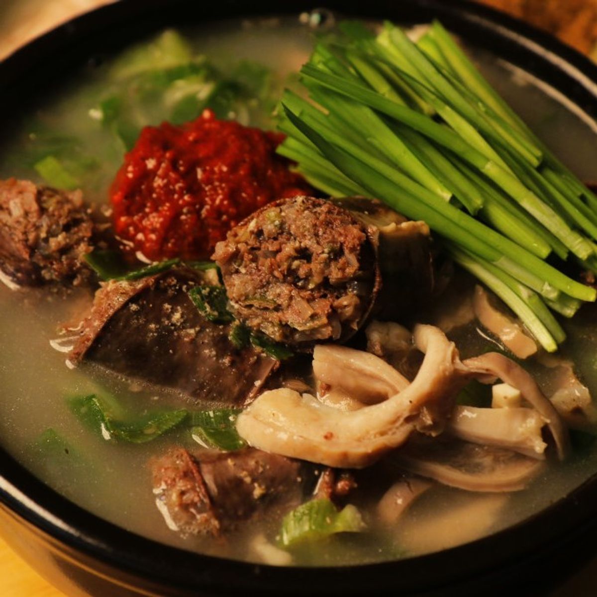 야채 순대가 들어간 병천 순대국입니다. 옛 장터에서 만난, 구수한 냄새가 김이 모락모락 피어 오르던 그 순대국 그대로 맛보실 수 있습니다. 특히 부드러운 소창으로 만들어 쫄깃한 식감이 좋은 병천 순대의 진가를 제대로 즐겨보세요.
