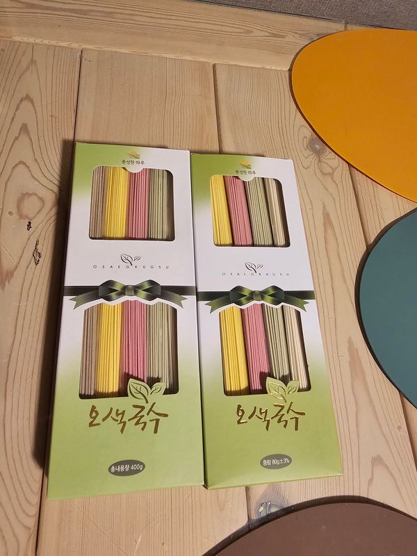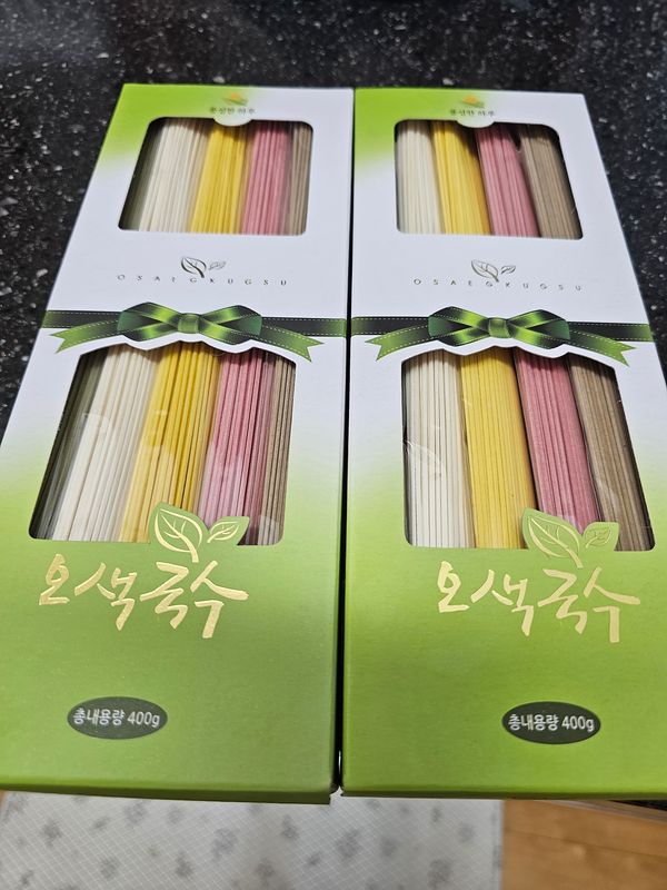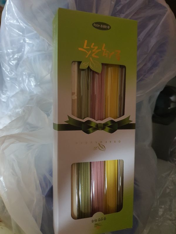 잘받았어요^^ 낼 신랑생일인데 잡채할려다 맛나는오색 국수해줄까해서 시켰어요 배송넘 빨라서 좋았어요 맛나게 잘해먹을께요^^