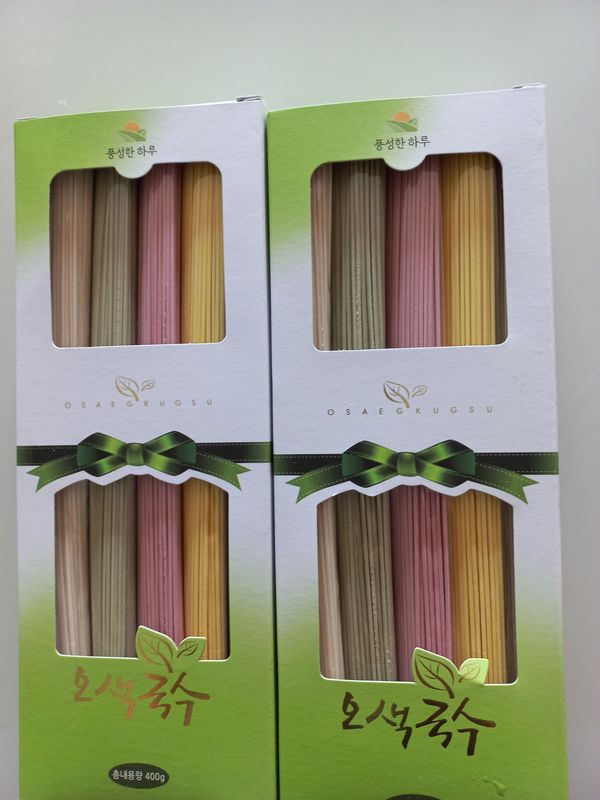 건강한 재료의 천연 빛깔 그대로 삶아서도 오색이 너무 이쁘고 쫄깃하고 보기도 좋고 맛도 좋았습니다..