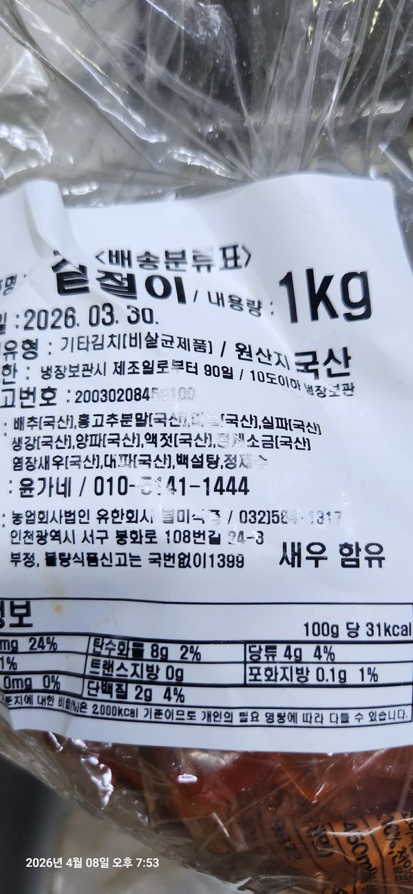 겉절이가 너무 맛있어서 받자마자 밥한공기 뚝딱했어요 섞박지도 맛나고 총각김치는 조금 익혀야되서 아직 ~~~