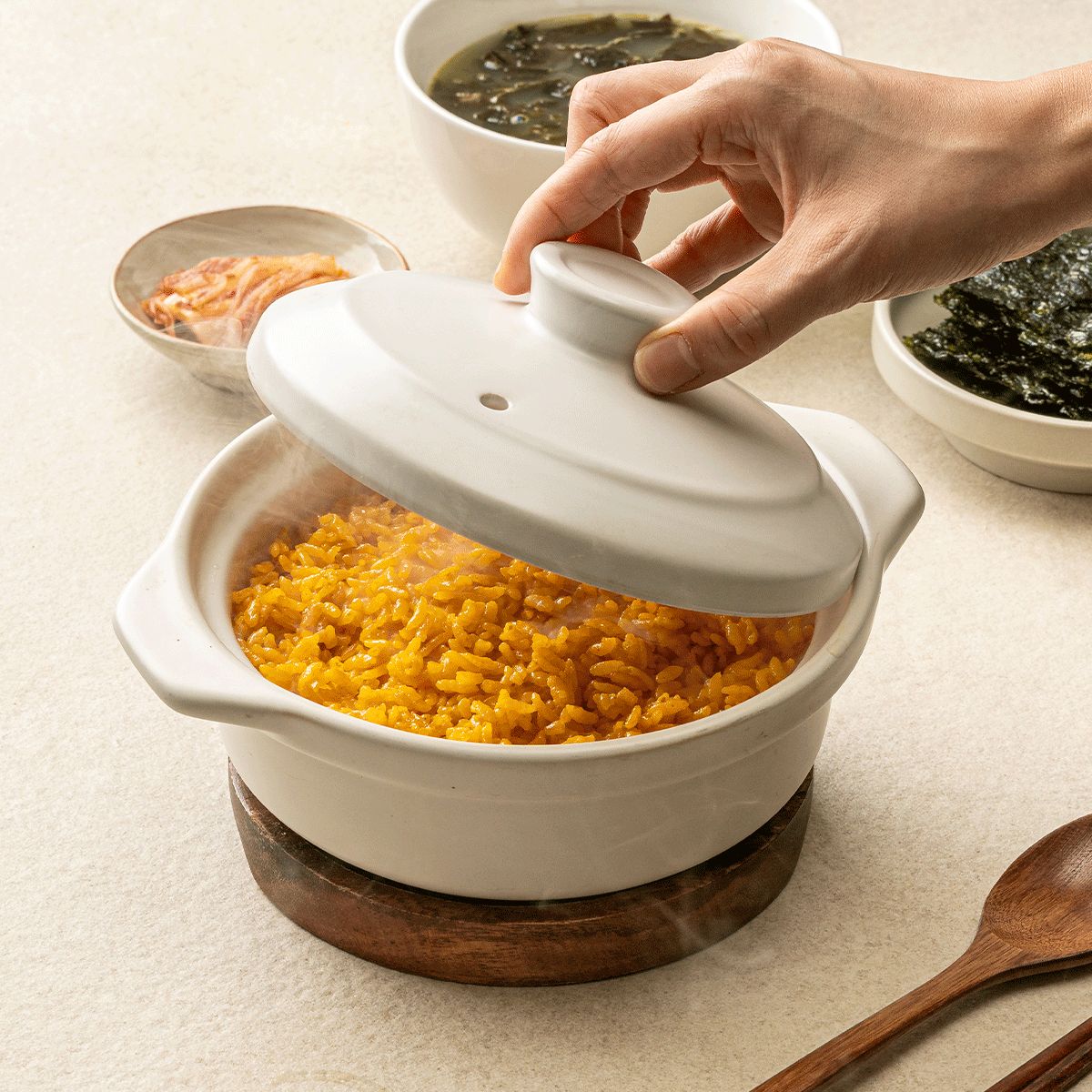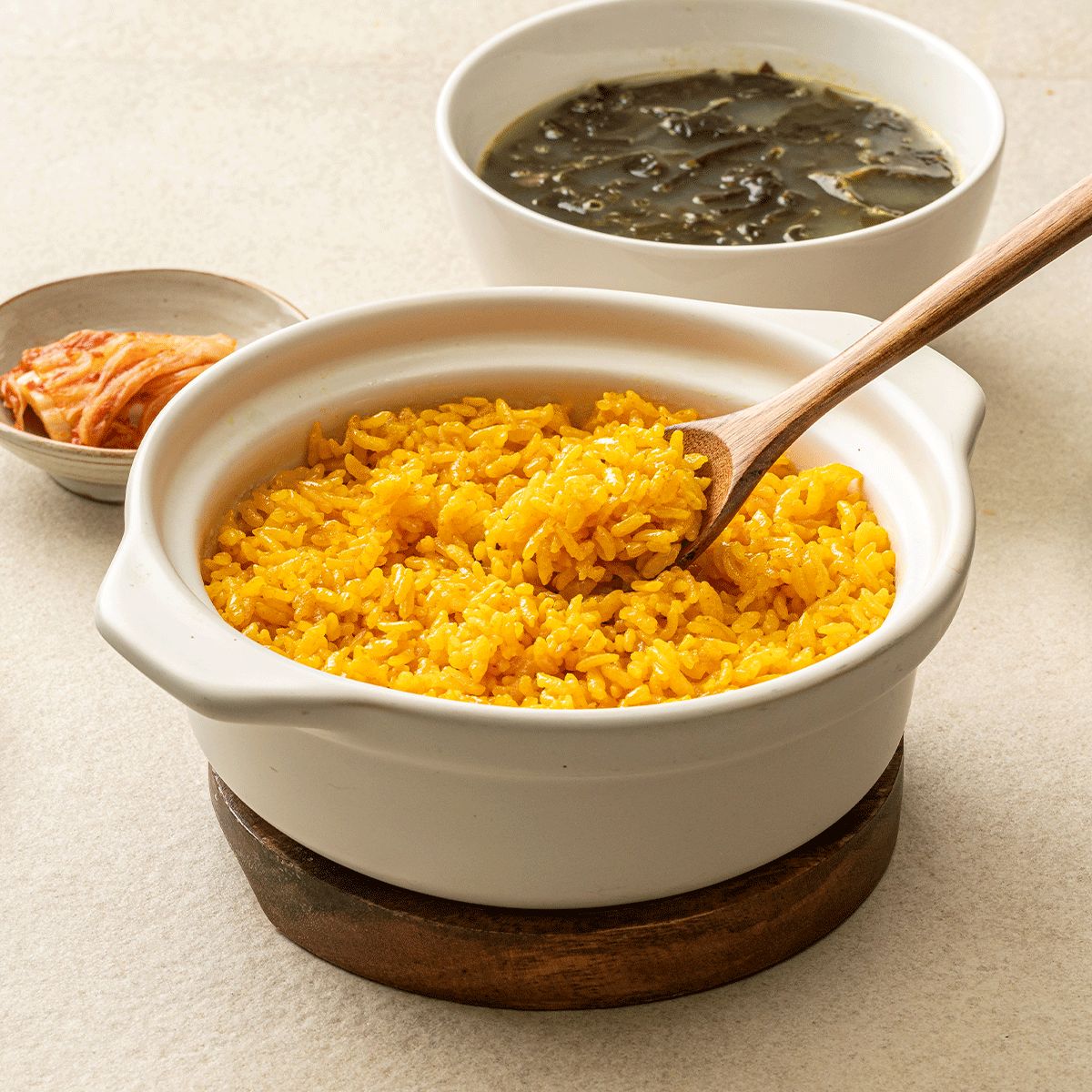 밥을 지을 때 한 포만 톡 넣어주세요. 저어주거나 섞어줄 필요도 없습니다. 노란 황금색으로 식욕자극은 물론, 보다 건강한 식사가 탄생할거에요.
