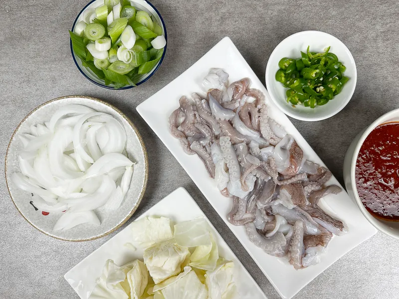 낙지부터 채소까지 모두 손질하여 보내드립니다. 간편하게 양념 소스, 마늘, 양파 등 각종 채소와 함께 볶아 주기만 하면 감칠맛 나는 매콤한 낙지볶음 완성이에요. 남은 소스에는 참기름과 김가루를 추가해 볶음밥으로 만들어 먹어도 좋아요.
