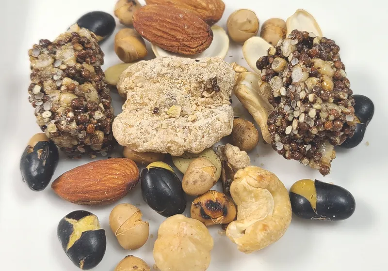 국내산 서리태와 백태, 아몬드, 캐슈넛, 호두 등 8가지의 엄선한 견과가 모여 고소한 맛을 내요. 강봉석조청 강정으로 건강한 단맛을 더해 한 입 베물 때마다 견과의 고소함과 자연스러운 단맛이 어우러져요.