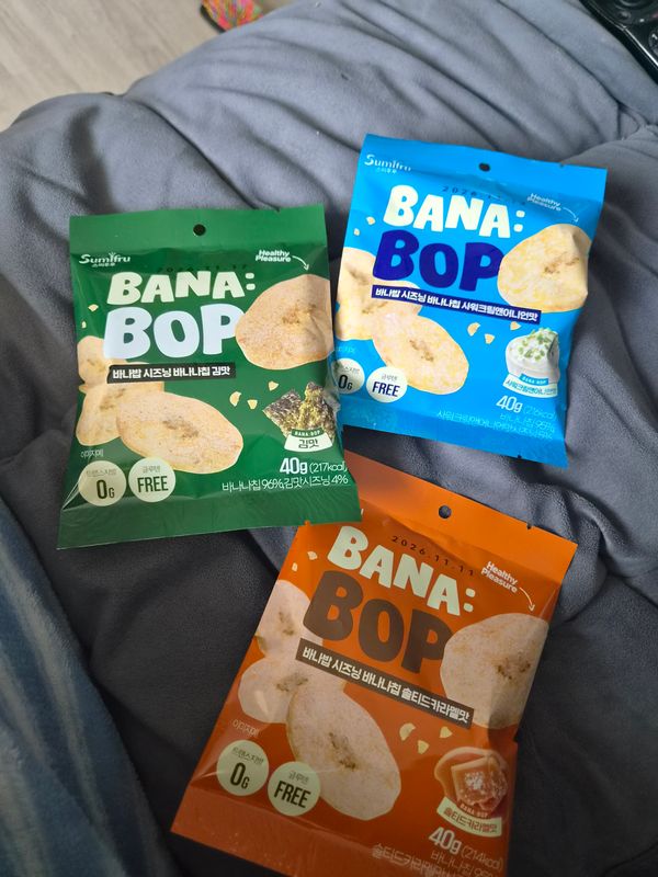 일반 시중에서 파는 말린 달기만 한 바나나칩만 먹어보다가 바나밥은 특별합니다. 단맛이 느껴지다가 김 시즈닝의 짭조름한 감칠맛이 일품입니다. 바나나와 김이 아주 잘 어울리고 저절로 맥주가 당깁니다.