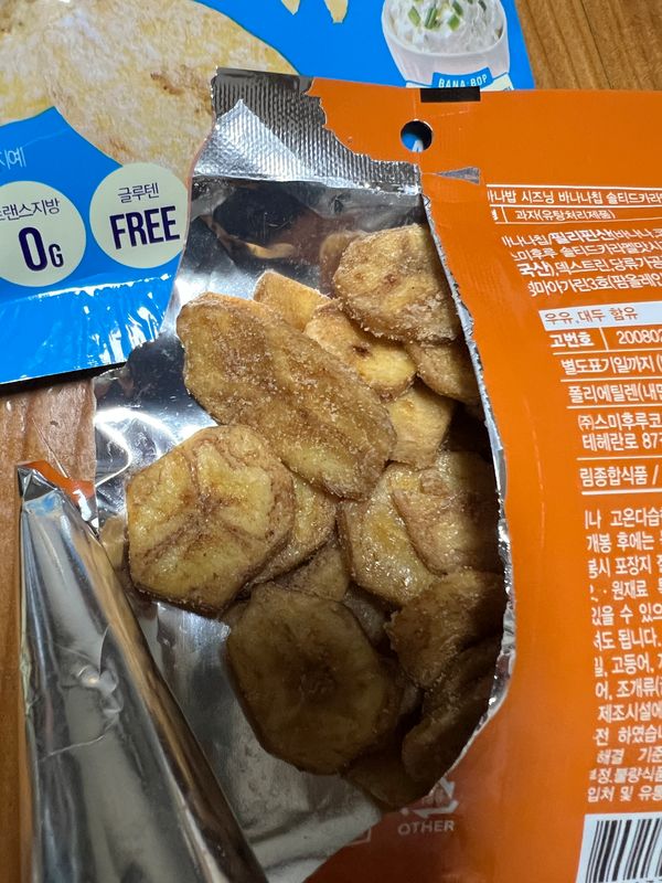 달콤하니 바삭바삭 맛도 좋은 바나나칩이네요 한번에 순삭하는 맛이라 자꾸자꾸 손이 가는게 문제입니다