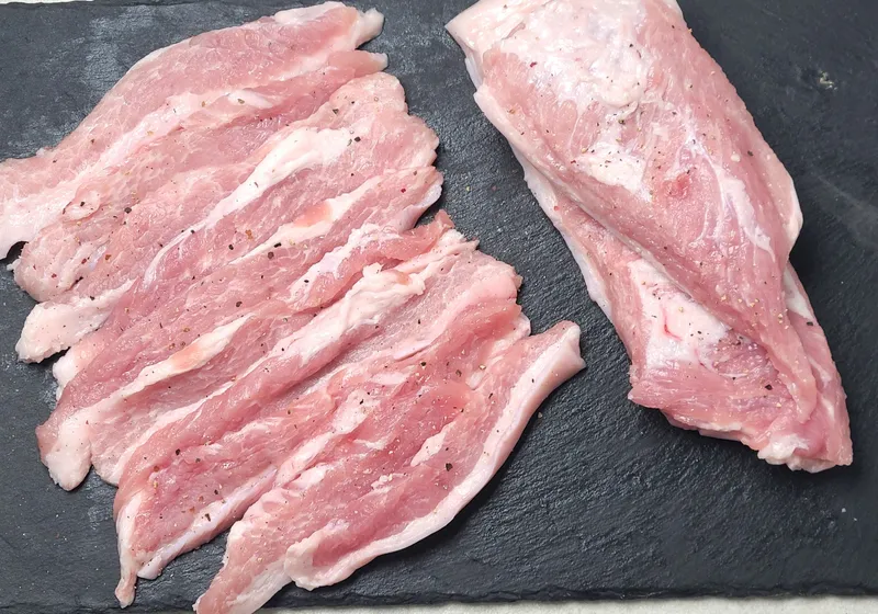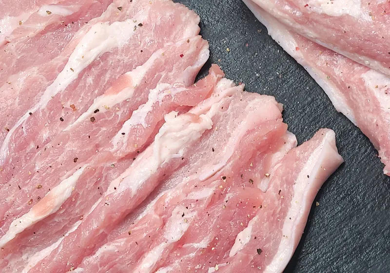 삼겹살 끝부분에 소량 생산되는 두껍데기살이에요! 식감이 매우 쫀득하고 고소해서 뒷고기 좋아하시는 분들에게 안성맞춤이죠. 항정살과 닮았지만 맛은 비교할 수 없답니다. 적절한 살코기, 지방 비율로 쫀득하고 매력적인 식감이 일품이에요.