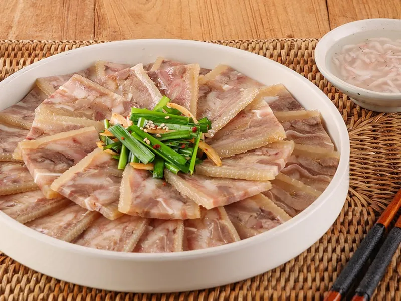 국내산 돼지머리를 엄선해 최대한 지방을 걷어내고 살코기와 콜라겐 부위만 사용하여 압착했습니다. 진한 고소함과 깊은 감칠맛에 반하게 되실 거예요.