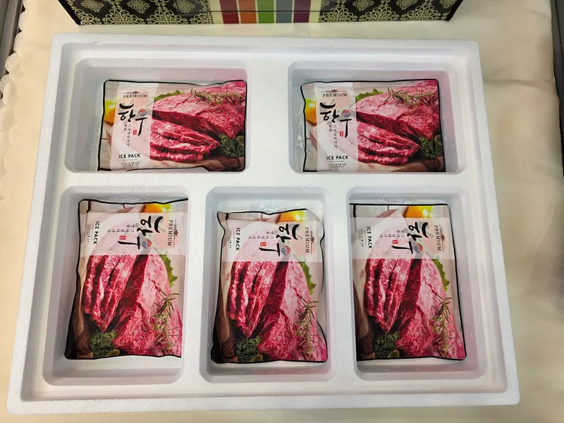 아이스팩이 고기 각각의 팩 밑에 있어 신선함 유지한채 배송오네요. 선물용으로 세심함에 기분 좋을거 같아요. 고기도 다양한 부위로 품질도 좋아요.