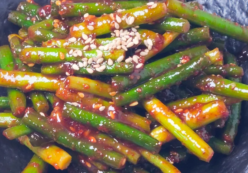 다양한 요리와 함께 곁들이기 좋은 간편한 밥반찬이에요. 식탁 분위기를 살려주는 마늘쫑무침으로 든든하고 맛있는 한 끼 식사를 즐겨보세요.