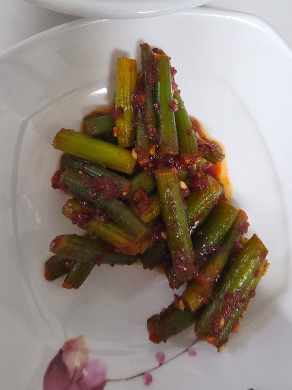 마늘쫑무침 양념이 맛있고 먹을때 마늘향도 나고 식감도 좋아요 시비스반찬도 감사합니다
