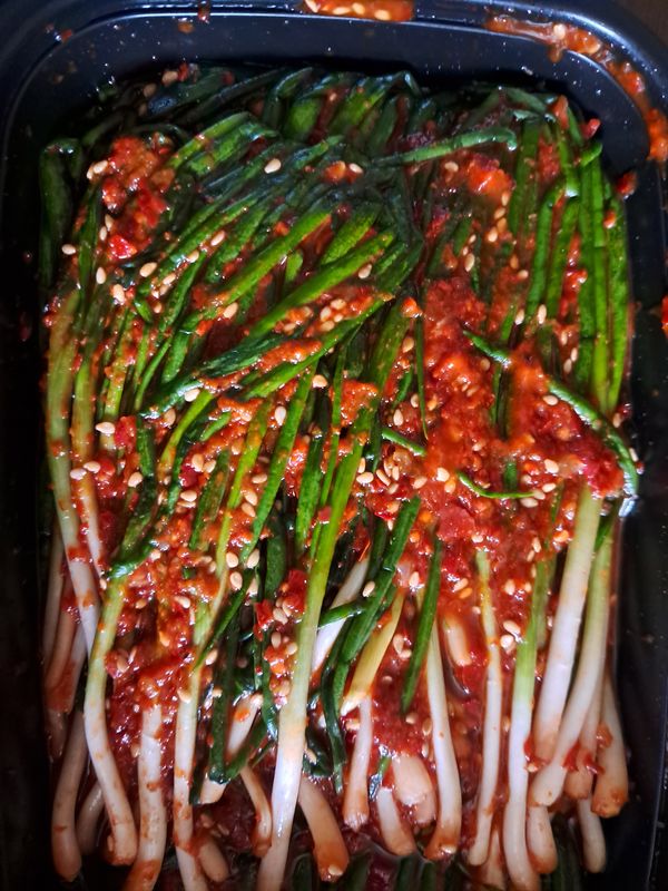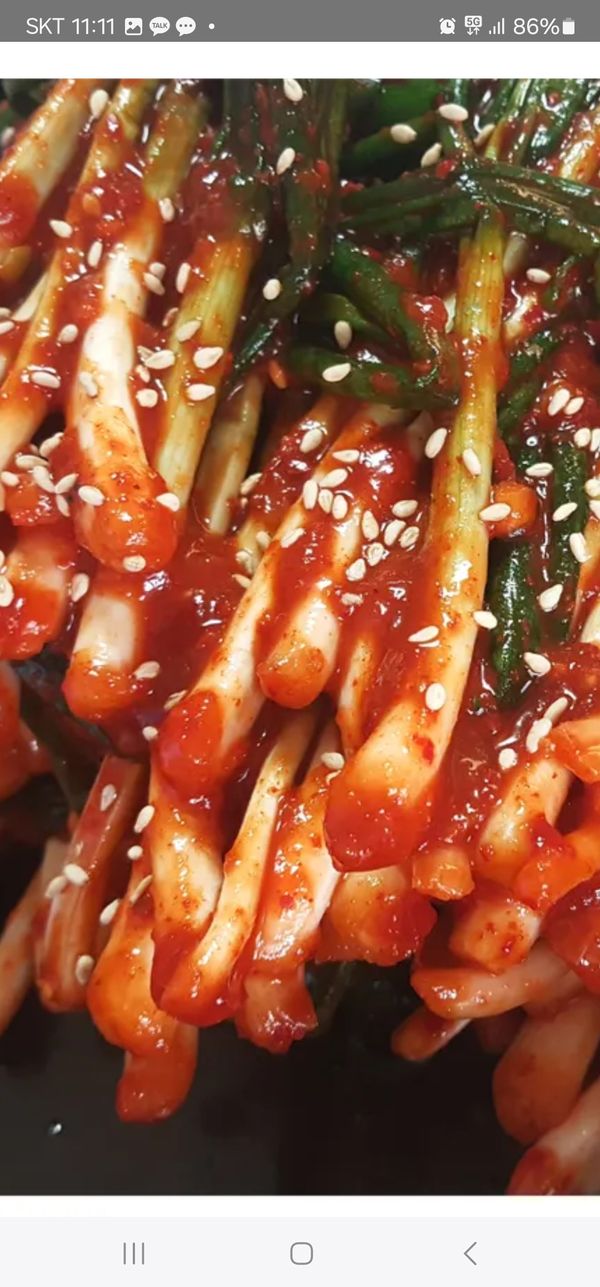 젓갈향강하지않고 여리고 좋은파만 골라 김치를 담았네요 양념장 많고 고춧가루 색도 곱고 좋네요 파김치 좋아하는데 여기 정말 맛있어요