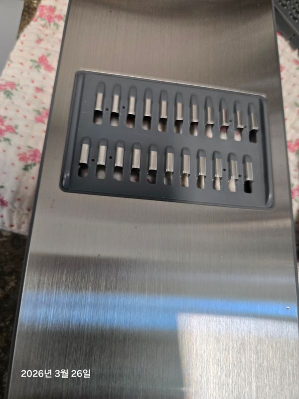 채칼 잘 받았습니다 다양한 용도로 사용할 수 있어서 좋고 자주 사용하는 거는 뒷쪽에 보관해 둘 수 있어서 그 또한 좋습니다 사용하는 앞쪽이 스텐레스여서 그 점도 좋아요 다만 굵은 채칼로 무채를 해봤는데 굵지가 않아요 그게 아쉽습니다