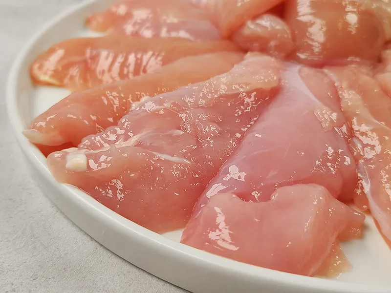 닭 안심은 지방 함량이 거의 없는 고단백질 저칼로리의 대표적인 부위입니다. 신선한 국내산 닭 한 마리에서 두 조각씩 나오며, 결이 살아있는 부드러운 식감과 담백함이 좋아요. 결대로 찢어서 드시기에도 좋고 육즙이 풍부하고 촉촉해요.